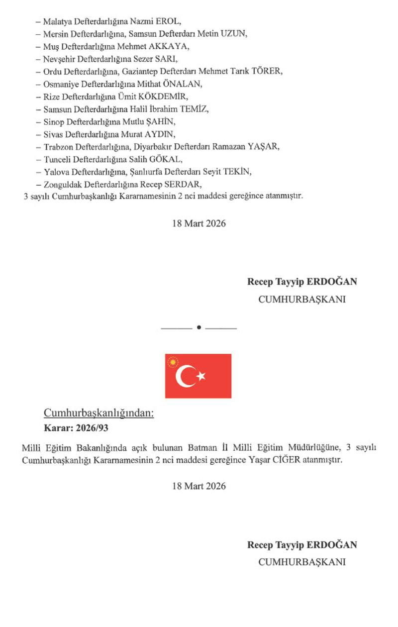 Batman İl Milli Eğitim Müdürlüğüne ise Yaşar Ciğer'in ataması yapıldı.