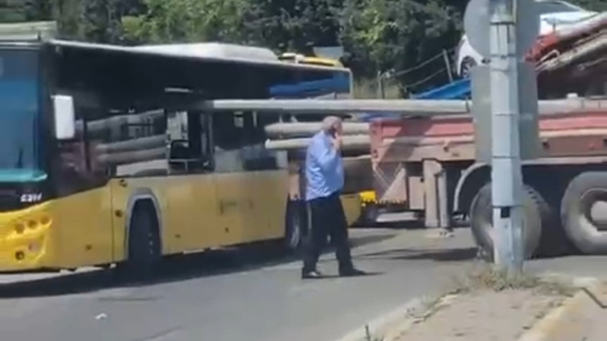 Ataşehir'de direk yüklü vinç dönüş yaptığı sırada direklerden bazıları İETT otobüsünün camından içeri girdi. Kazada şans eseri ölen ya da yaralanan olmazken, otobüste hasar meydana geldi.