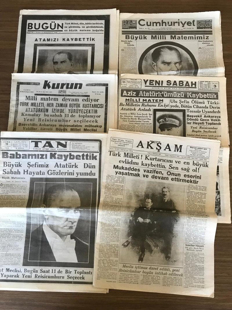Kurun Gazetesi: Milli Matem devam ediyor. Türk Milleti her zaman büyük kurtarıcısı Atatürk'ün izinde yürüyecektir. Kamutay sabah 11'de toplanıyor. Yeni Reisi Cumhur seçilecek.
