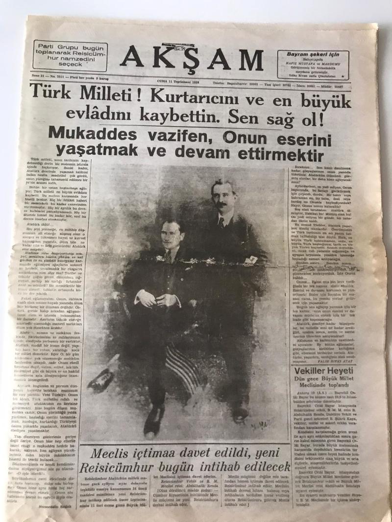 Akşam Gazetesi: Türk Milleti kurtarıcısını ve en büyük evladını kaybettin. Sen sağ ol! Mukaddes vazifen onun eserini yaşatmak ve devam ettirmektir.