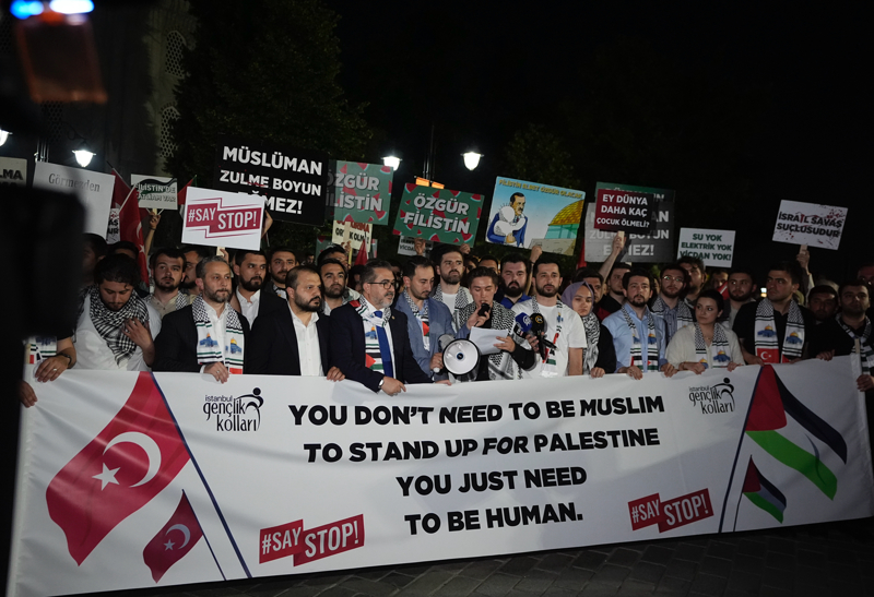 Burada grup adına açıklama yapan AK Parti İstanbul Gençlik Kolları üyesi Ömer Faruk Atçı, İsrail'in saldırılarına tepki göstermek için her platformda bulunduklarını söyledi.
