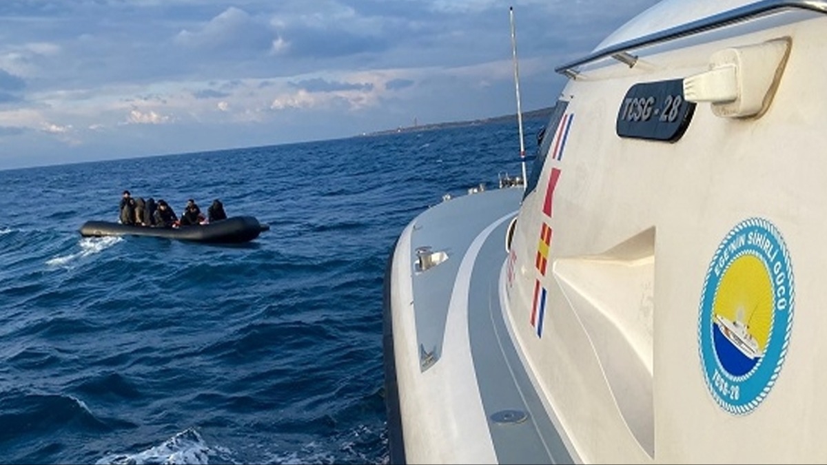 Lastik botta bulunan 9'u çocuk 23 düzensiz göçmen, Sahil Güvenlik ekiplerince kurtarıldı.