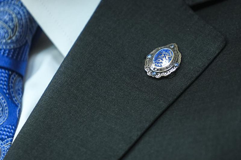 Öte yandan Devlet Bahçeli'nin, özel pırlanta kesim bir taş kullanılan taşın çevresinde Hud Suresi 112. ayetten alınan "Emrolunduğun gibi dosdoğru ol" ifadesinin yer aldığı yüzük ile oval ve desenli bir formda tasarlanan aynı ifadenin yer aldığı rozet taktığı görüldü.