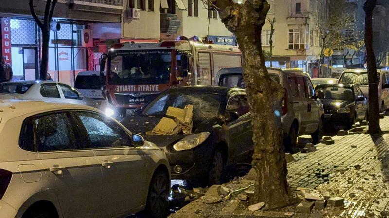 Balkonlardan kopan beton parçaların bir kısmı sokağa, bir kısmı ise park halindeki araçların üzerine düştü.