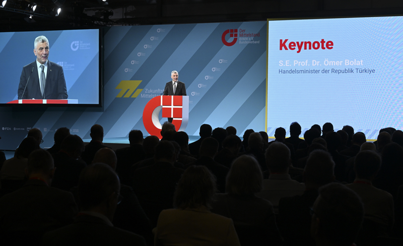 "AB ülkeleriyle ticaretimiz toplam ticaret hacmimizin yüzde 40'ını oluşturuyor. Bildiğiniz üzere Gümrük Birliği, Türkiye ile AB arasındaki ticari ve ekonomik ilişkilerimizin bel kemiğini oluşturuyor. Her iki taraf da bu kapsamlı ve benzersiz ortaklıktan faydalanmaktadır. Bizler, gövde üretimimiz, altyapımız ve nitelikli işgücümüzle AB'nin değer zincirlerinin dayanıklılığına ve Birliğin küresel pazarlardaki rekabet gücüne önemli katkılarda bulunduk. Üretim modelimiz, AB'nin endüstriyel modelini tamamlayıcı nitelikte. Dolayısıyla Gümrük Birliği'nin güncellenmesinde Alman hükümetinin ve iş dünyasının güçlü desteği bizim için çok önemlidir. Gümrük Birliği ile ilgili olarak, her iki taraf için de bazı küçük sıkıntılar var, bunların üstesinden geleceğiz. Avrupa Konseyi, AB Komisyonuna rapor hazırlama yetkisi verdi ve rapor hazırlandı. Önümüzdeki hafta yapılacak olan Avrupa Konseyi liderler zirvesinde bu raporun görüşülmesini ve kabul edilmesini bekliyoruz."