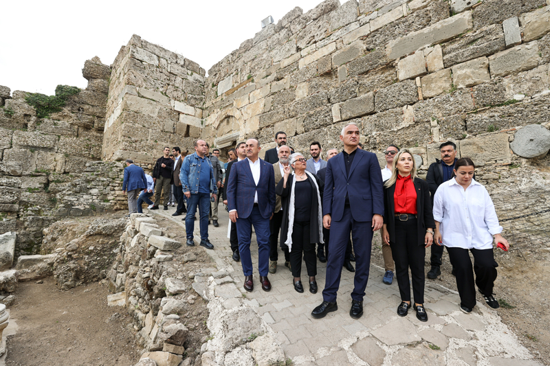 Side Antik Kenti Kazı Başkanı Prof. Dr. Feriştah Alanyalı'nın kazı çalışmaları hakkında bilgi verdiği programa Dışişleri Bakanı Mevlüt Çavuşoğlu ve Antalya Valisi Ersin Yazıcı da katıldı.