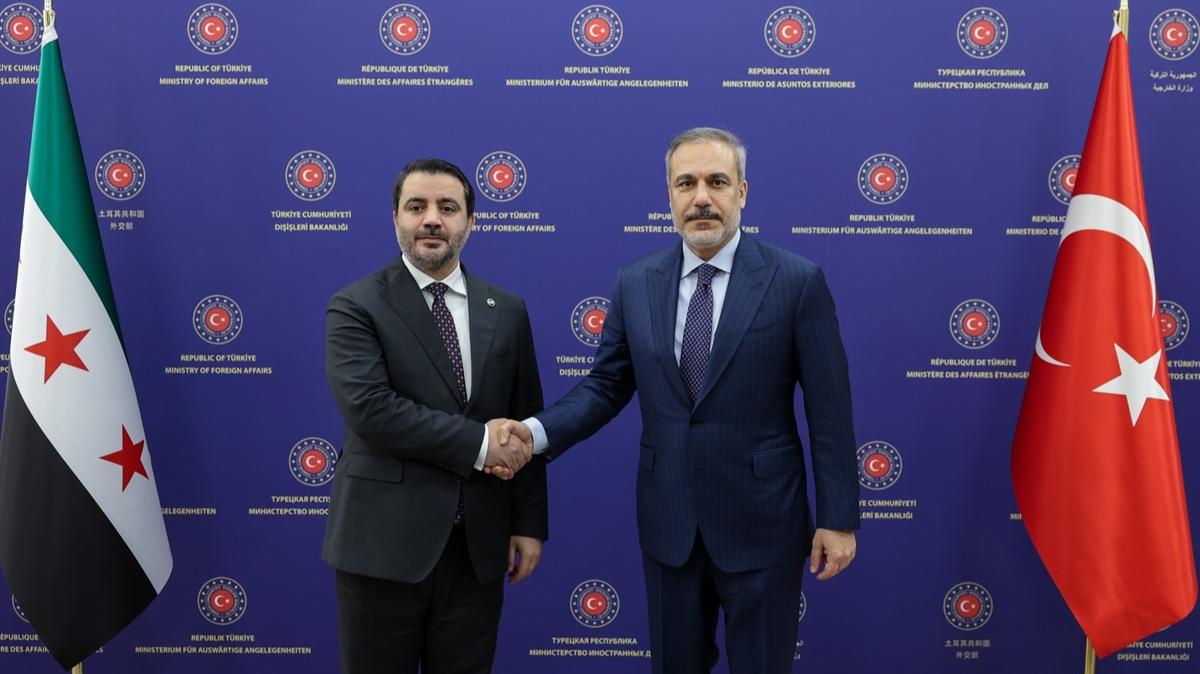 Dışişleri Bakanı Hakan Fidan, Suriye'deki yeni yönetimin Dışişleri Bakanı Esad Hasan Şeybani ile bir araya geldi.