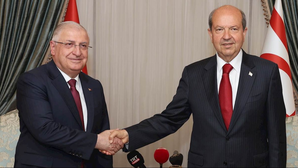 Bakan Güler'in, resmi temasları kapsamında, KKTC Cumhurbaşkanı Tatar tarafından kabul edildiği belirtilen açıklamada, "Görüşmede Bakan Yaşar Güler'in beraberinde Genelkurmay Başkanı Orgeneral Metin Gürak, Savunma Sanayii Başkanı Haluk Görgün, Deniz Kuvvetleri Komutanı Oramiral Ercüment Tatlıoğlu, Kara Kuvvetleri Komutanı Orgeneral Selçuk Bayraktaroğlu, Hava Kuvvetleri Komutanı Orgeneral Ziya Cemal Kadıoğlu ve Lefkoşa Büyükelçimiz Metin Feyzioğlu da yer aldı." ifadeleri kullanıldı.