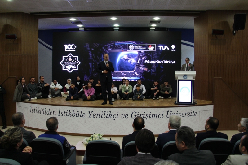 Türkiye'nin ilk astronotu Alper Gezeravcı ile Çankırı Karatekin Üniversitesindeki "Gençlik Buluşması"nın ardından, Vali Mustafa Fırat Taşolar'ı makamında ziyaret eden Bakan Kacır, Valilik Şeref Defteri'ni imzaladı.