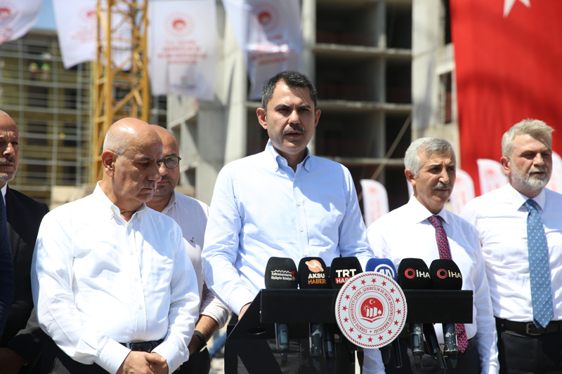 Çevre, Şehircilik ve İklim Değişikliği Bakanı Murat Kurum, incelemelerde ve ziyarette bulunmak üzere geldiği Kahramanmaraş'ta Ebrar Sitesi inşaat alanında inceleme yaptıktan sonra gazetecilere açıklamada bulundu.