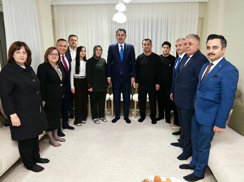 Bakanlıktan yapılan açıklamaya göre, Bakan Kurum, "Yeni Evim, İlk İftarım" programı kapsamında 6 Şubat depremlerinin ardından afet konutlarında yaşayan Çınar ailesinin evini ziyaret etti.