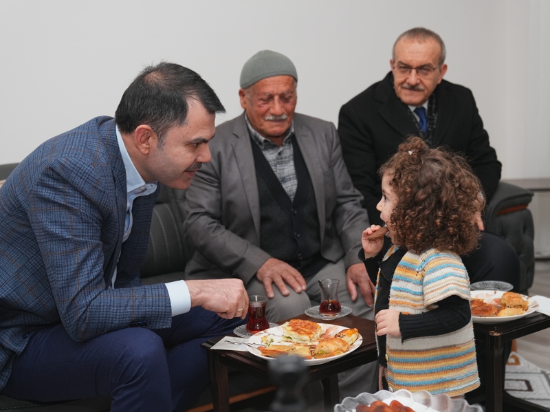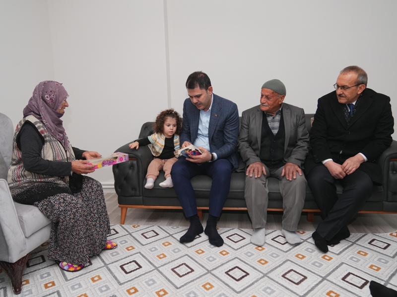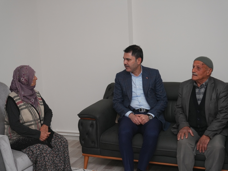 Bakan Kurum, 76 yaşındaki Yusuf Demirel'in evine konuk oldu. Bakan Kurum'dan Cumhurbaşkanı Recep Tayyip Erdoğan'a selamlarını iletmesini isteyen Yusuf Demirel, "Yapılan evlerde hiçbir eksik yok. Başta Cumhurbaşkanımız olmak üzere sizlere emeği geçen herkese Allah onlardan razı olsun" dedi.