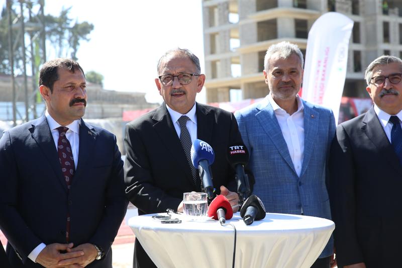 "En büyük hasar gören illerimizin başında da Hatay'ımız vardı. Merkezde Antakya ve Defne, ilçelerde İskenderun, Kırıkhan, Samandağ gibi ilçelerimizde de büyük hasarlar oluşmuştu. Depremin ilk anından itibaren büyük bir gayretle zararları giderebilmek, buradaki yaraları sarabilmek amacıyla çalışma yürütüyoruz. Bu çalışmalarda da çok şükür epeyce bir yol aldık. Hatay özeliyle ilgili söylenecek olursa; AFAD'ın bize vermiş olduğu hak sahipliği sayısı konut itibarıyla 140 bin civarında, 139 bin 600 gibi söyleniyor ama biz yuvarlak 140 bin diyoruz. Bu sayı artabilir çünkü mahkemelere intikal etmiş konular var. Orta hasarlı, az hasarlı binaların kendine has birtakım hukuki ihtilafları ve çıkacak sonuçları da sayıyı değiştirebileceği gerçeğinden hareketle 140 bini geçer diye tahmin ediyoruz. 13 bin kadar da iş yeri burada yapılması icap ediyor, bu kadar karşımızda hak sahibi var. Bizler, Çevre, Şehircilik ve İklim Değişikliği Bakanlığı olarak AFAD'ın bize bildirmiş olduğu hak sahipliği sayısı üzerinde elde ettiğimiz verileri alıp daha sonra da Hatay'ımızın bir tarafta boş bulabildiğimiz alanlarda, hazine arazilerinde çok hızlı bir şekilde davranıp konutların inşaatına başladık."