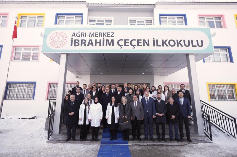 Milli Eğitim Bakanı Yusuf Tekin, İbrahim Çeçen İlkokulu'nda öğretmenlerle bir süre görüştükten sonra öğrencilere karnelerini dağıtmak için sınıflara çıktı.