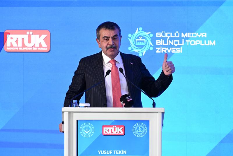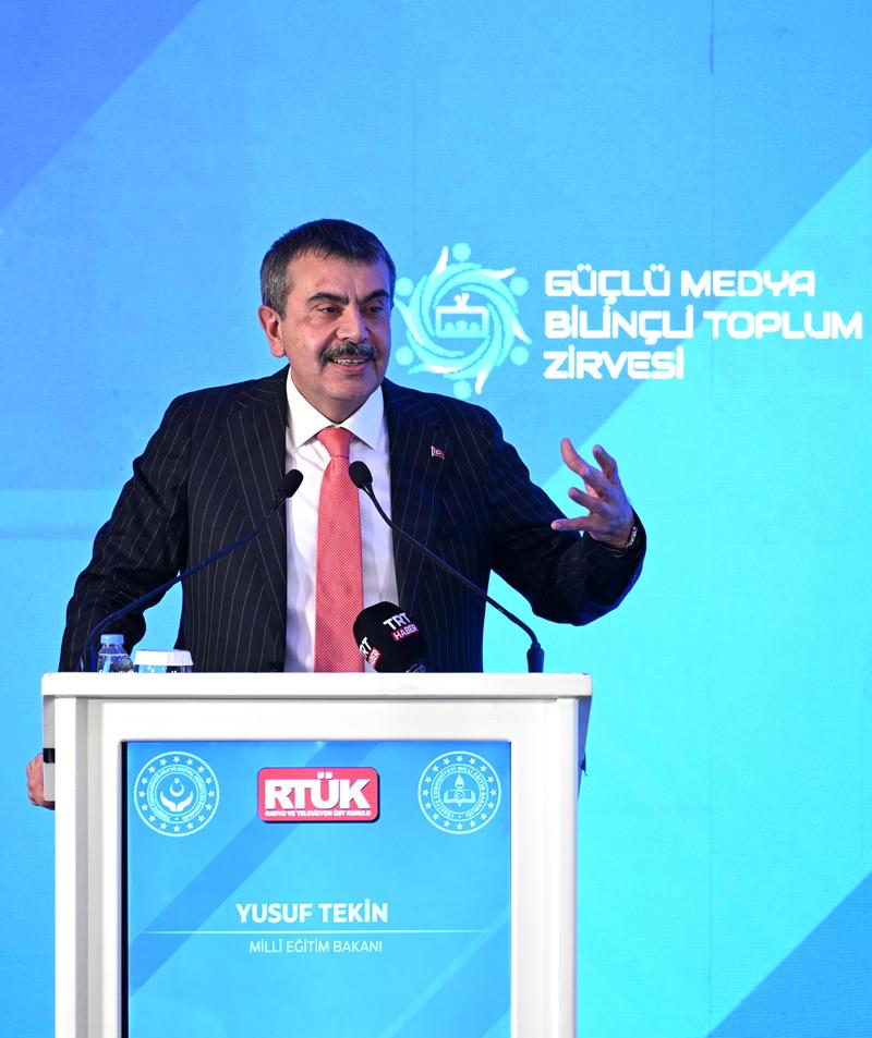 Bakan Tekin, Radyo ve Televizyon Üst Kurulunca (RTÜK) medya içeriklerinin toplumsal yapı üzerindeki etkilerini kapsamlı bakış açısıyla ele almak amacıyla düzenlenen "Güçlü Medya, Bilinçli Toplum Zirvesi"ne katıldı.