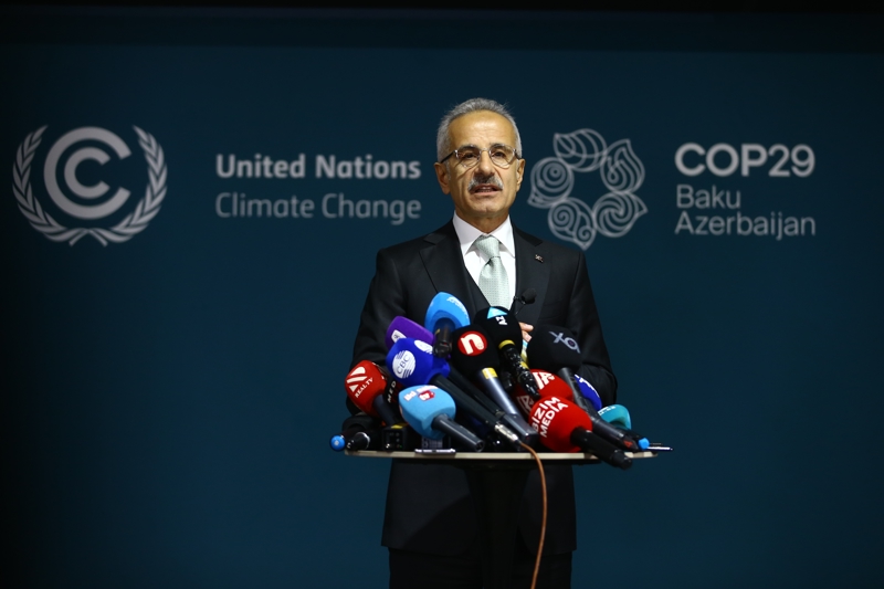 Ulaştırma ve Altyapı Bakanı Abdulkadir Uraloğlu, Azerbaycan'ın başkenti Bakü'de düzenlenen 2024 Birleşmiş Milletler İklim Değişikliği Konferansı'na (COP29) katıldı. Şehirlerde Ulaşım ve Altyapı konulu Üst Düzey Toplantısı'nda konuşan Bakan Uraloğlu, konferans kapsamında kurulan Türkiye pavilyonunu ziyaret ederek iklimsel ve meteorolojik çalışmaları yerinde inceledi. Bakan Uraloğlu, basın mensuplarına yaptığı açıklamada, "İklim değişikliğiyle ilgili ana başlıkların gündem olduğu COP29'dayız. Burada iklim değişikliğinden karbon salınımına, sanayiye, ulaşıma kadar ve yaşamımızda ihtiyacımız ne varsa hepsinin etkilendiği bir süreçten bahsediyoruz." dedi.