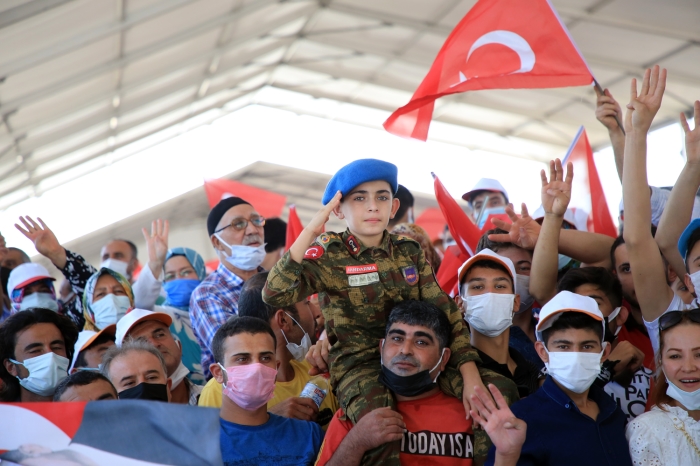 "Himayelerinizde, neredeyse sıfırdan dizayn ettiğimiz araştırma-geliştirme ekosistemimiz, lojistik altyapımız, Türkiye'nin her noktasına yayılan üniversitelerimiz, teknoloji geliştirme bölgelerimiz ve organize sanayi bölgelerimizle, Türkiye artık yerli ve yabancı tüm yatırımcıların dikkatini cezbediyor. Pandemiye rağmen büyüme hızını kesmeyen sanayi yatırımlarımız ve bugün kamuoyuna zatıaliniz tarafından paylaşılacak bu devasa girişim, Türkiye'nin yükselen cazibesinin adeta bir ispatı konumunda. Önümüzdeki dönemde de sizlerin destek ve yönlendirmeleriyle ülkemizin cazibesini artıracak işlerimize kararlılıkla devam edeceğiz."