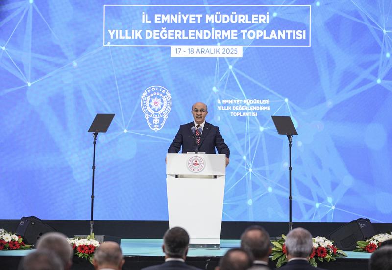 Bakan Yerlikaya, Emniyet Genel Müdürlüğü (EGM) Şehit Demet Sezen Konferans Salonu'nda düzenlenen '81 İl Emniyet Müdürleri ile Değerlendirme Toplantısı'na katıldı. Programda konuşan Bakan Yerlikaya, 2025 yılında polis sorumluluk bölgelerinde icra edilen çalışmalarla ilgili açıklamalarda bulundu. Türk Polis Teşkilatı'nın 350 binden fazla personelle yurdun huzur ve güvenliğini sağladığını belirten Bakan Yerlikaya, "1 yılın değerlendirmesini yapacağız. Modern anlamda Emniyet teşkilatlanmamızın temelleri 180 yıl önce atıldı. Emniyet Genel Müdürlüğümüz, 352 bin personeliyle; 55 bin kilometrekarelik sorumluluk sahasında vatandaşlarımızın güvenliğini sağlıyor" diye konuştu.