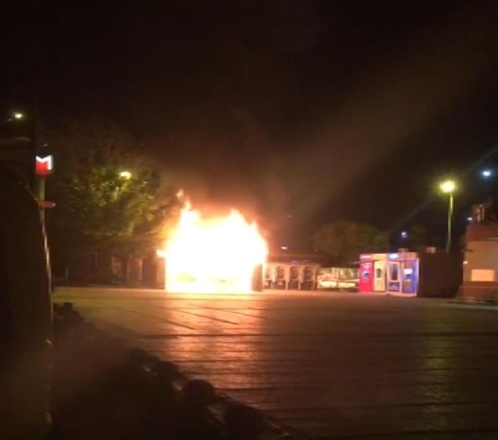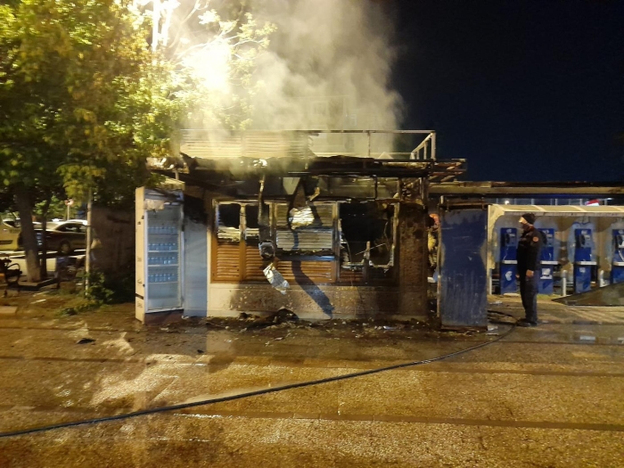 Öte yandan, halk ekmek büfesinin yanma anları, çevredeki bir kişi tarafından cep telefonu kamerasıyla kaydedildi. Görüntülerde büfenin alev alev yandığı görülüyor. Görüntülerin devamında ise itfaiye ekipleri olay yerine gelerek yangına müdahale ediyor.