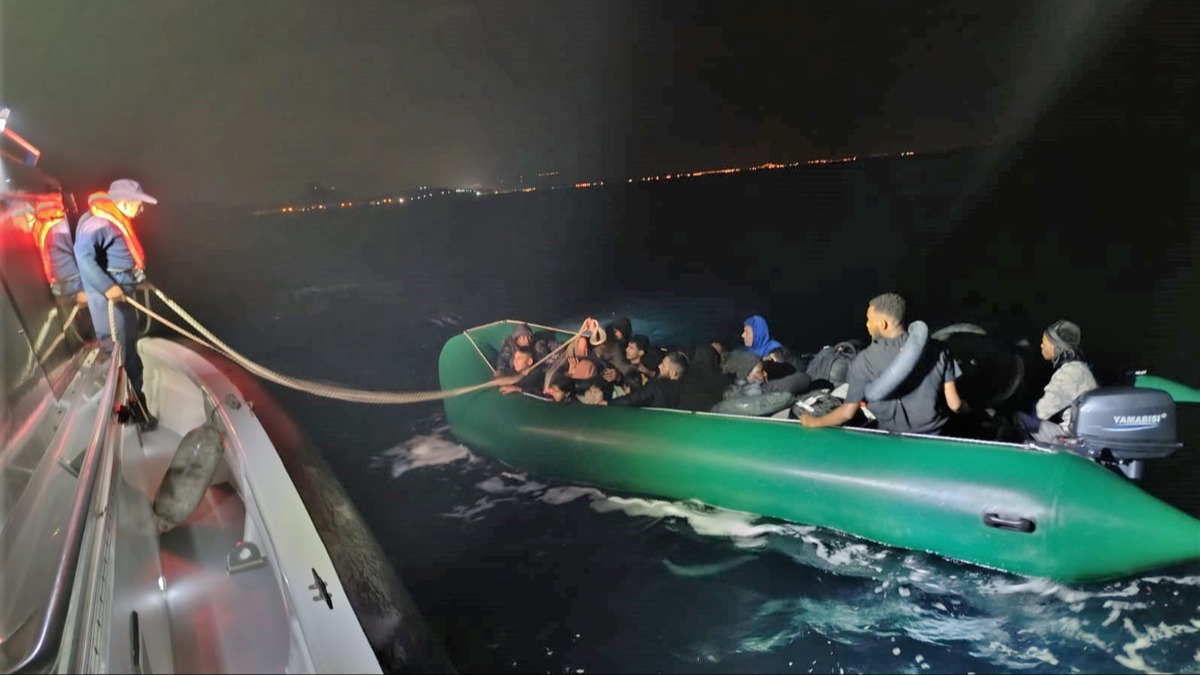 Sahil Güvenlik botu "KB-115" ve "KB-111" ile bölgeye ulaşan ekipler, 23'ü çocuk 57 düzensiz göçmeni yakaladı.
