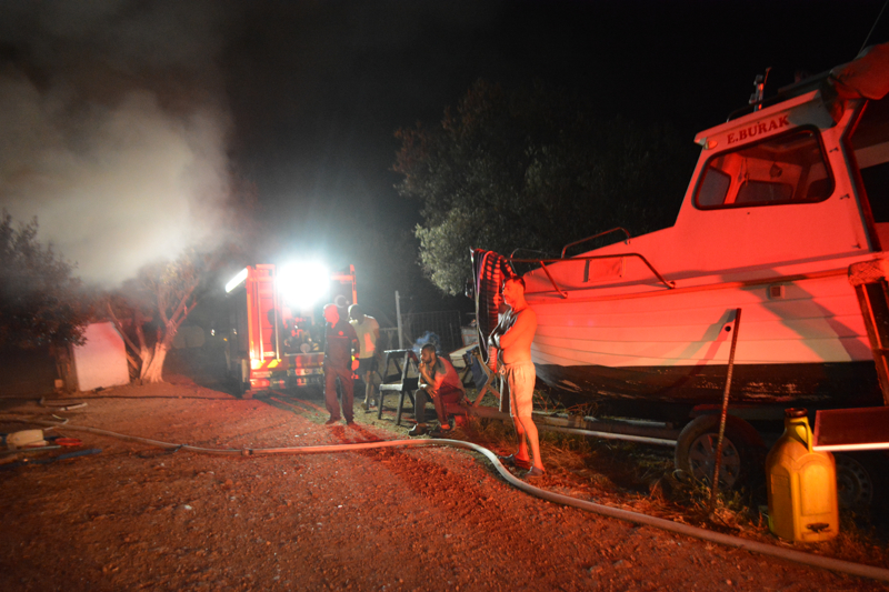 Yangın, çiftliğin yanındaki zeytinliğe sıçramadan kısa sürede söndürüldü.