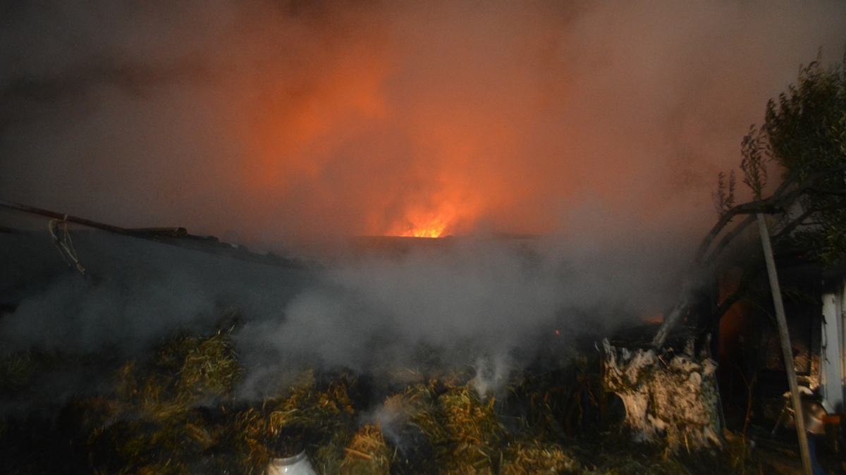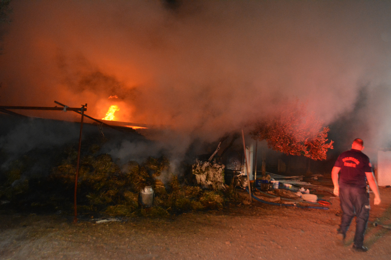 Salihkent Mahallesi Galipo mevkisindeki bir çiftliğin samanlığında henüz bilinmeyen nedenle yangın çıktı.