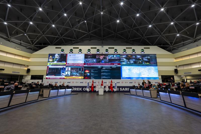AFAD Başkanlık Afet ve Acil Durum Yönetim Merkezi'nde İçişleri Bakan Yardımcısı Mehmet Aktaş başkanlığında gelişmeler anlık olarak takip edilirken, AFAD Başkanı Ali Hamza Pehlivan bölgeye intikal etti.