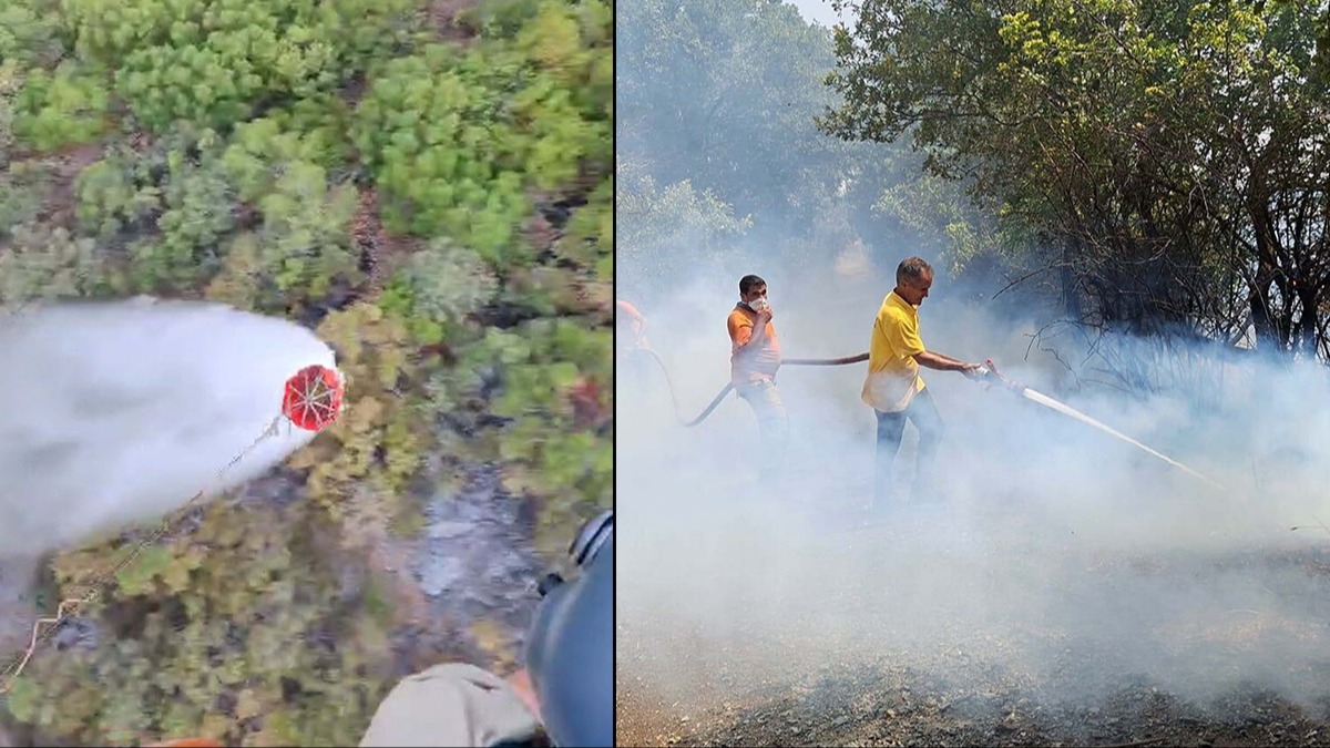 Kırsal Karahaliller Mahallesi'ndeki bir arazide dün çıkan ve ormanlık alana sirayet eden yangına 23 arazöz, 8 su ikmal aracı, 10 ilk müdahale aracı, 13 hizmet aracı, 4 uçak, 5 helikopter, 5 dozer, greyder ve diğer kurumlardan gelen araçlarla toplam 98 araç ve 230 personel müdahale ediyor.