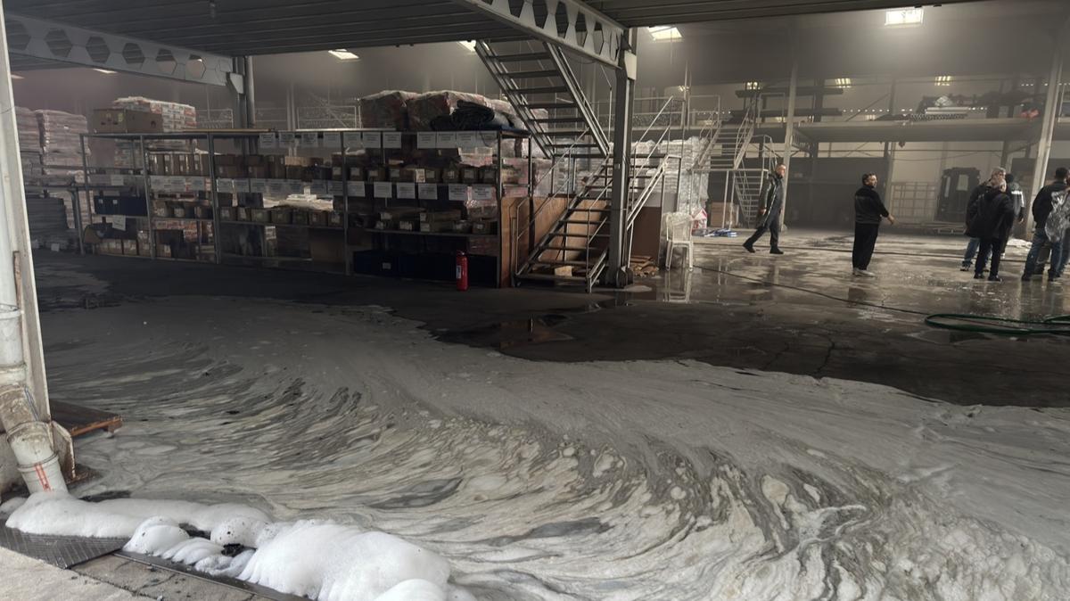 Ağır Sanayi Bölgesi Gümüşçeşme Mahallesi'ndeki bir yapı malzemesi firmasına ait depoda henüz bilinmeyen nedenle yangın çıktı.