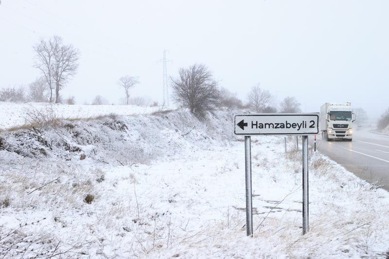 Bulgaristan'a ulaşımın sağlandığı Hamzabeyli Sınır Kapısı yolu da kar nedeniyle beyaza büründü.