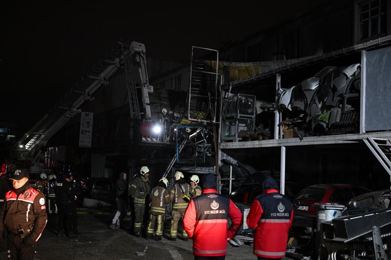 İkitelli OSB Mahallesi'ndeki Atatürk Oto Sanayi Sitesi'nde bulunan 2 katlı bir iş yerinde henüz belirlenemeyen nedenle yangın çıktı.