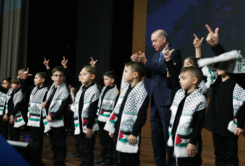 İşitme engelli çocuklar, Gazze'de yaşanan insanlık dramını vurgulamak amacıyla "Ses Ver" şarkısını işaret diliyle seslendirildi. Cumhurbaşkanı Erdoğan da sahnede çocuklara eşlik etti.