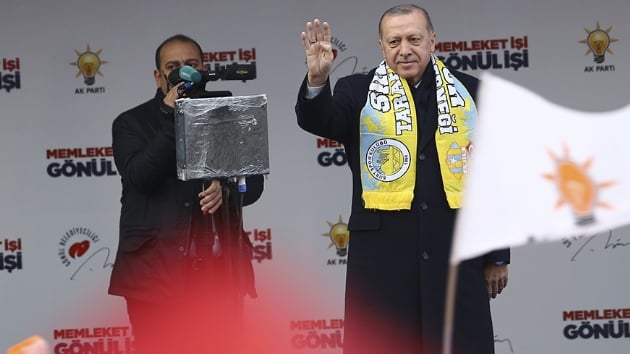 AK Parti Genel Başkanı ve Cumhurbaşkanı Recep Tayyip Erdoğan, yerel seçimler kapsamında Siirt'te seçmene seslendi. Erdoğan, eşi Emine Erdoğan'ın memleketinde 22 yıl önce okuduğu ve cezaevinde sonuçlanan Ziya Gökalp'ın şiirini yeniden seslendirdi.