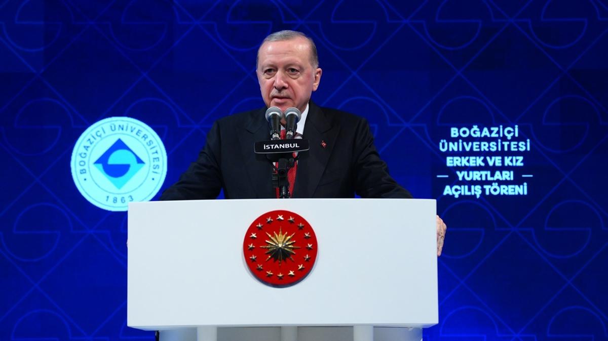 Cumhurbaşkanı Erdoğan, Boğaziçi Üniversitesi Erkek ve Kız Yurtları Açılış Töreni'nde yaptığı konuşmada, uzun yıllar Türkiye'nin kanayan yarası olan yurt sorununu yürüttükleri projelerle çözüme kavuşturduklarını söyledi.