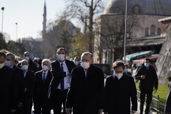 Erdoğan, cuma namazını kıldığı Ayasofya-i Kebir Cami-i Şerifi'nden çıkışta basın mensuplarının gündeme ilişkin sorularını yanıtladı.
