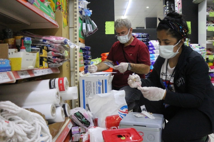 İl Sağlık Müdürlüğü aşı ekipleri, aşılanmayanlar için harekete geçti. Aşılama oranının yüzde 59,4, vaka sayısının ise 100 binde 656,8 olduğu kentte, kapı kapı dolaşan ekipler, aşı olmak istemeyenleri ikna etmeye çalışıyor. Aşı hakkı olanların ise aşılarını yapıyor. Cumhuriyet Mahallesi'nde ise bir markete giren ekipler, çalışanlar ile kasiyerlere aşı yaptı. Sağlık Mahallesi'nde ise ikna ekipleri kapı kapı dolaştı. Ekipte yer alan Toplum Sağlığı Merkezi Uzman Dr. Orhan Ayan, "Yaklaşık 250 personelden oluşan aşı ekiplerimiz kenar mahallelerde ev ev dolaşıyor. Gün içinde aşı ekiplerimiz 5-6 mahalleye yayılarak, aşı olmak isteyen vatandaşlarımızı aşılacak" dedi.