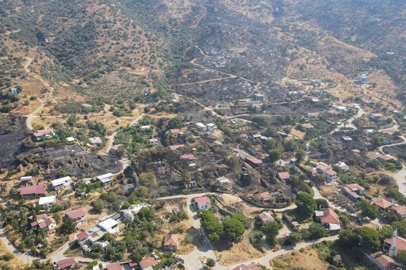 İzmir'in Bayındır ilçesi Yeşilova Mahallesi'nde dün otluk alanda çıkan ve mahalleye sıçrayan yangın, ekiplerin havadan ve karadan müdahalesiyle kontrol altına alındı.