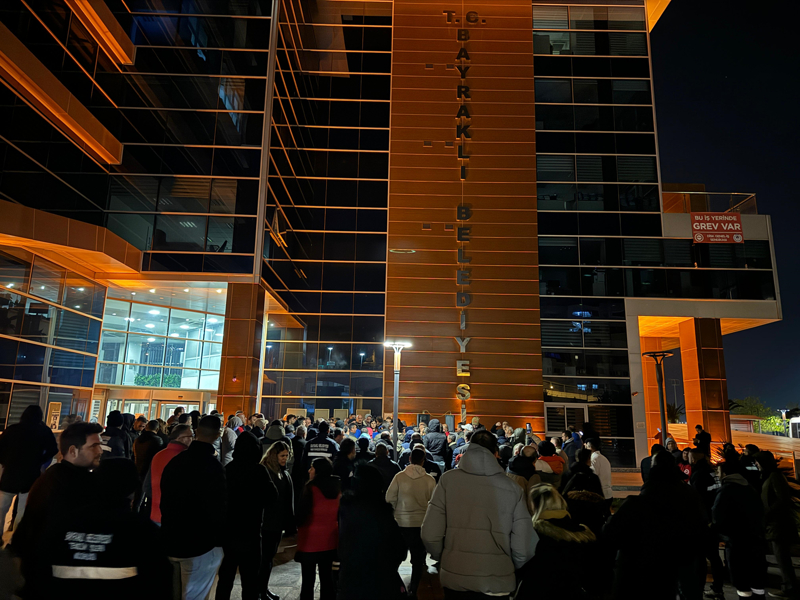 İzmir'in Bayraklı Belediyesi'nde DİSK'e bağlı Genel İş Sendikası ile Toplu İş Sözleşmesi (TİS) görüşmelerinde anlaşma sağlanamaması üzerine, sendika üyesi işçiler grev başlattı.