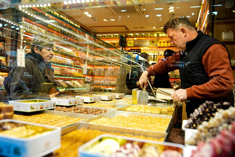Şeker, lokum, kuruyemiş ve çikolataların müşterilerin beğenisine sunulduğu tezgahlarda yer yer yoğunluklar yaşandı.