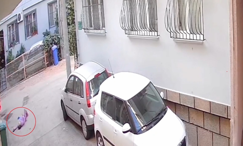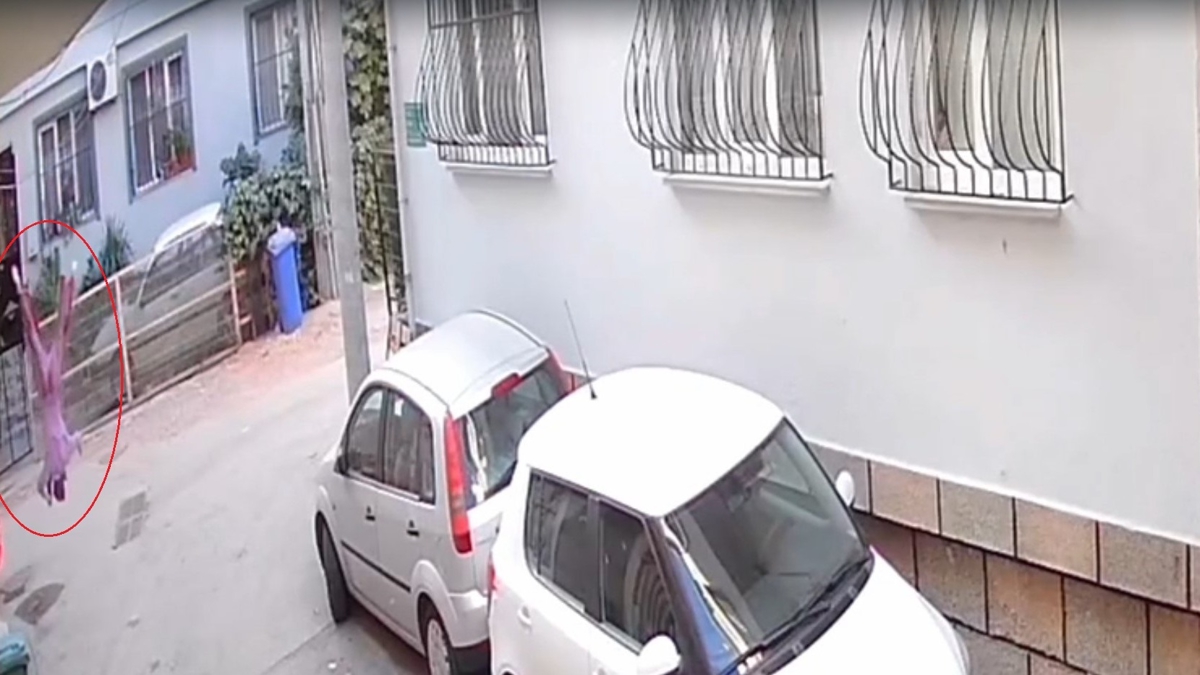 Görüntülerde Güler'in beton zemine baş üstü düştüğü ve elinde temizlik bezi olduğu görüldü.