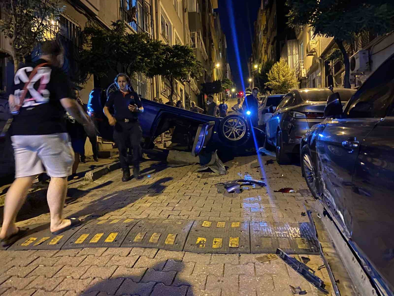Kaza, saat 00.00 sıralarında Beşiktaş Muradiye Mahallesi Kalıpçı Sokak'ta meydana geldi. Edinilen bilgiye göre, sokakta yokuş yukarı seyir halinde olan 34 EDY 07 plakalı otomobil, sürücüsünün direksiyon hakimiyetini kaybetmesiyle park halindeki iki araca çarparak takla attı. Takla atan araçtaki sürücü ve beraberindeki iki kişi kendi imkanlarıyla dışarı çıktı. Çevredekiler durumu polis, itfaiye ve sağlık ekiplerine bildirdi. Olay yerine gelen polis ekipleri sokakta güvenlik önlemi alırken sağlık ekipleri, sürücü ve beraberindeki iki kişiye tedbir amacıyla müdahalede bulundu. Kazada takla atan araç kullanılamaz hale gelirken park halindeki iki araçta da hasar meydana geldi.