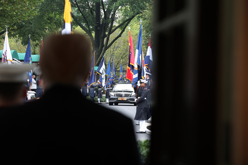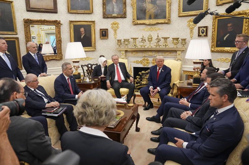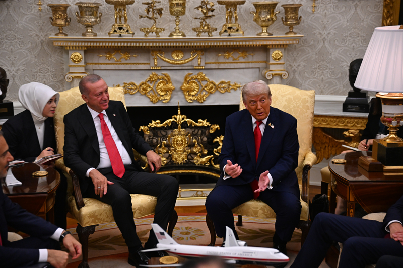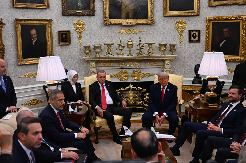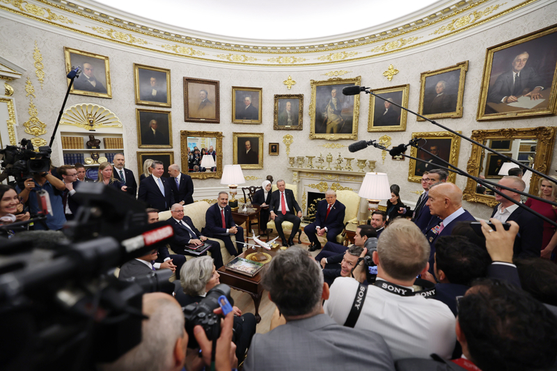 Oval Ofis'teki baş başa görüşmenin ve heyetler arası öğle yemeğinin ardından ABD Başkanı Trump, Cumhurbaşkanı Erdoğan'a kapıya kadar eşlik etti.