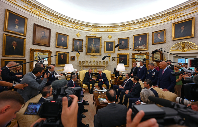 İki lider karşılama töreninin ardından basına açıklamalarda bulunmak için Oval Ofise geçti.