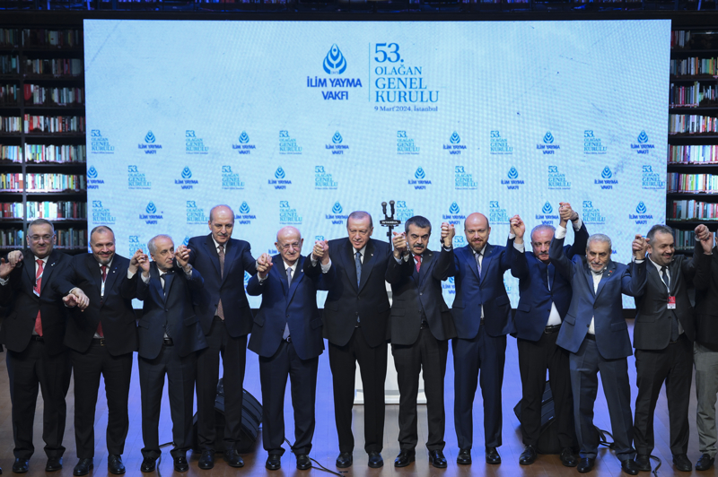 İlim Yayma Vakfının, ilim yolunda yorulmadan gayret gösteren, zorlukları inançlarıyla aşan güzide insanların eseri olduğunu vurgulayan Erdoğan, "Vakıf, senedimizde ifade edilen 'memleket dahilinde ve haricinde ilmin yayılmasını teşvik etme' ülküsüne adanma hikayesidir. Yarım asrı aşan tarihimizde memleketimize nice değerler kazandırdık, nice fidanlar yetiştirdik. Yurtlarımız, burslarımız, yayınlarımız ve akademik desteklerimizle, ilmin bu toprakların dört bir yanında var olmasını sağladık." dedi.