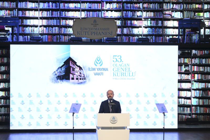 Bilal Erdoğan, Haliç Üniversite Konferans Salonu'nda düzenlenen İlim Yayma Vakfı 53'üncü Olağan Genel Kurulu'nda, medeniyetin eşsiz birikimini geleceğe taşıma ve insanlığa ışık olma yolculuklarının, 1951 yılında İlim Yayma Cemiyetiyle başladığını belirtti.