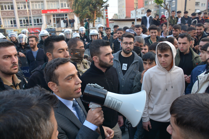 Kaymakam Cihat Koç beraberinde İlçe Emniyet Müdürü Saffet Özdemir ile halka megafonla seslenerek "Şunu bilin ki ben de buradaki polis arkadaşlarımız da aynı şeyi hissediyoruz. Yapılan hakaret, bizim de Kur'an'ımıza yapılan hakaret ama buna tepki göstermek, taşkınlık yaparak, sizin kadar hassas olan polisimize saldırarak olmaz. Burası bir hukuk devleti. Herkes kendi kuralını uygulayamaz. Kanun gereğini yapacak. Biz de takipçisi olacağız." dedi.