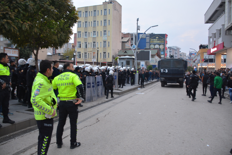 Kalabalığın dağılmasının ardından gözaltına alınan İ.B, Kaymakamlık binasından çıkarılarak İlçe Emniyet Müdürlüğüne götürüldü.