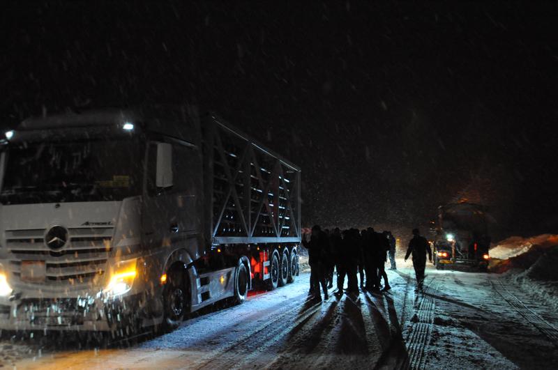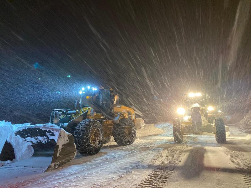 Sürücünün yardım istemesi üzerine bölgeye yönlendirilen İl Özel İdaresi karla mücadele ekipleri, yoğun tipiye rağmen 4 saatte yolu açtı.