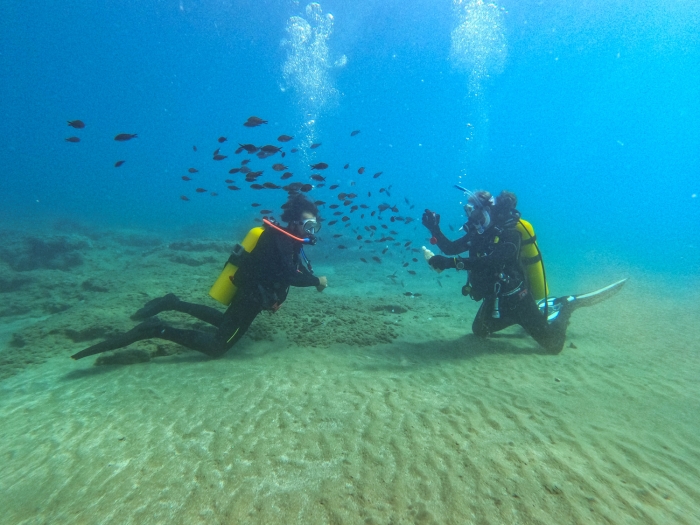 Eşinin teşvikiyle 9 yıl önce hobi amacıyla dalmaya başlayan Çete, bu alanda ilerledikten sonra dalıcı eğitmeye karar verdi.