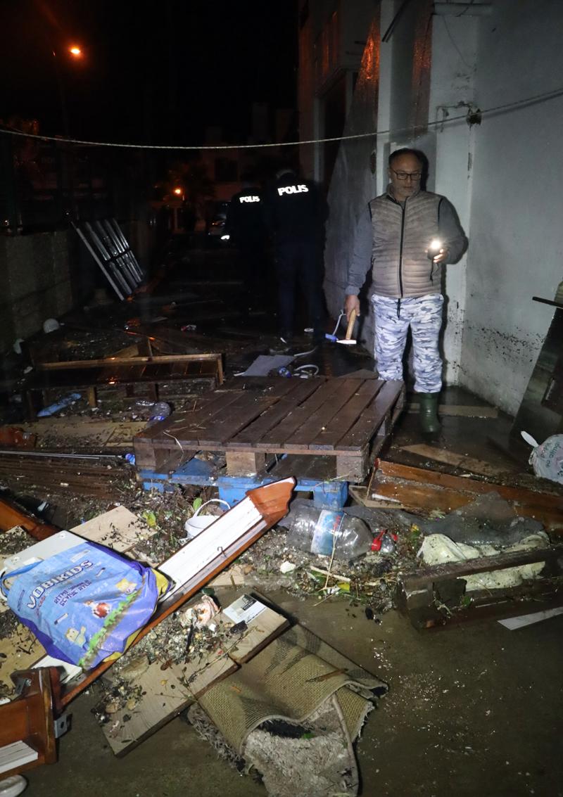 Konacık ve Gümbet bölgesindeki derelerden gelen sular Bitez Mahallesi'nden denize ulaştı. Derelerin debisi yükselirken, bölgedeki bazı cadde ve sokaklar da sular altında kaldı.